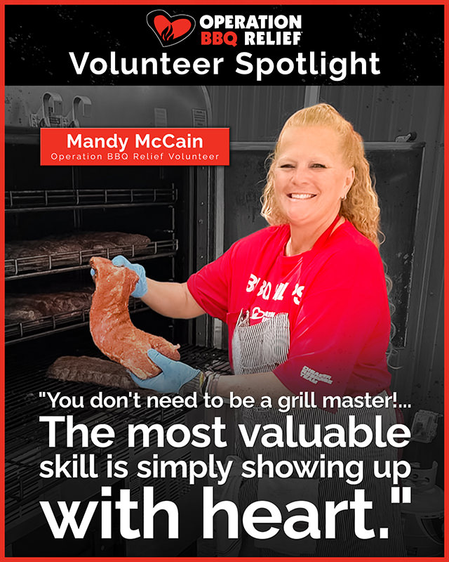 Inspired by Mandy’s story? We are always looking for people with a heart for service to join our OBR Volunteer family. Whether you’re a pitmaster or have never touched a grill, there is a place for you. To register, download the “OBR Volunteers” smartphone app or visit https://operationbbqrelief.org/volunteer/new-volunteers.